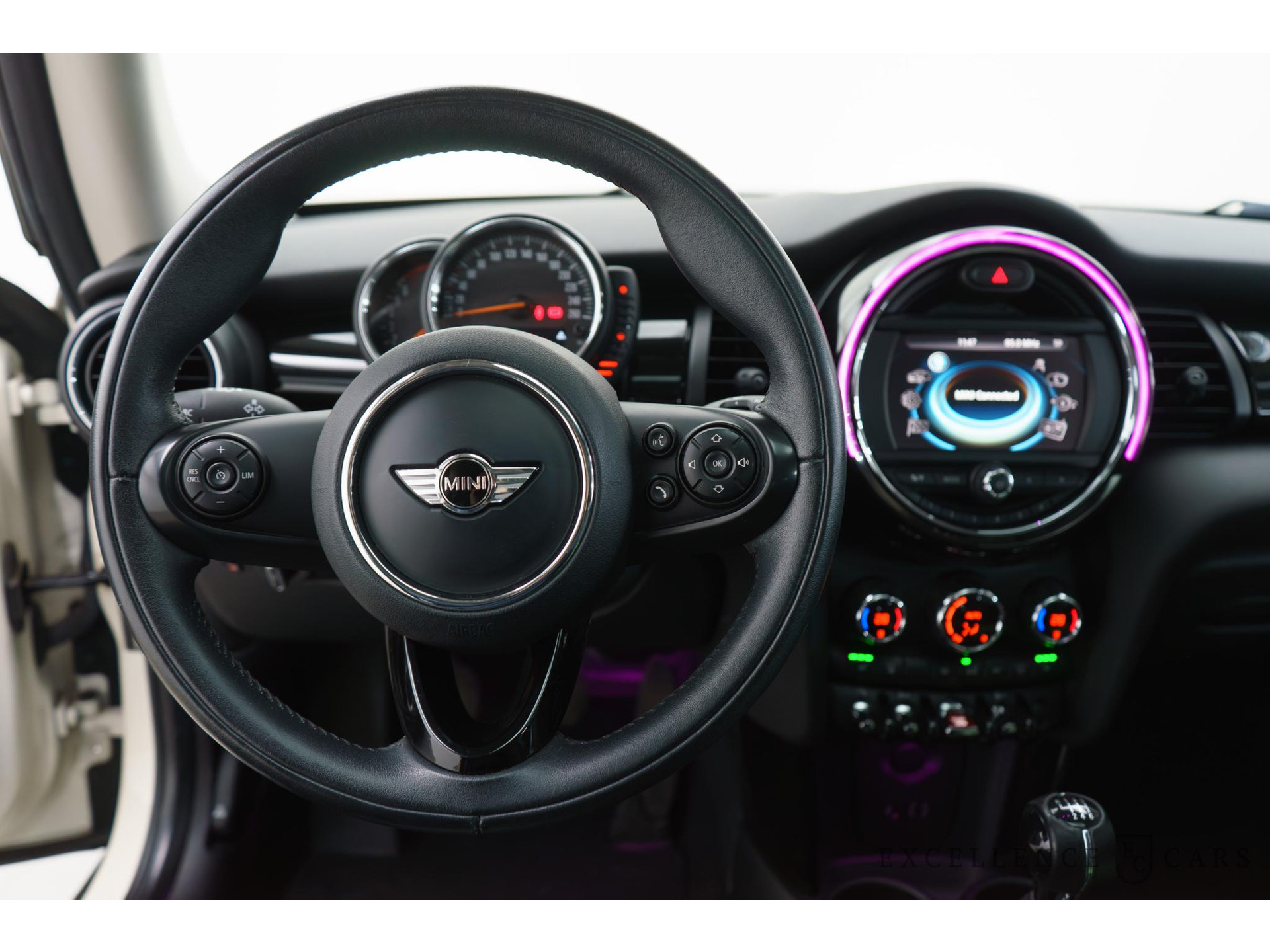 In deze Mini vindt u schakelaars op het stuur om het audiosysteem te bedienen en het navigatiesysteem. Met automatische airconditioning hoeft u alleen de gewenste temperatuur in te stellen. Het systeem doet de rest. Met de aanwezige parkeersensoren weet u altijd zeker of het past. De automatisch inschakelbare verlichting en regensensor zorgen dat onderweg automatisch de verlichting en de ruitenwissers worden ingeschakeld. Daarmee nemen ze u veel werk uit handen. Maximumsnelheid? Even de cruise control instellen en u blijft perfect binnen de marges. Natuurlijk behoren keyless entry, lederen stuur, centrale deurvergrendeling met afstandsbediening en boordcomputer ook tot de uitrusting van deze complete auto.